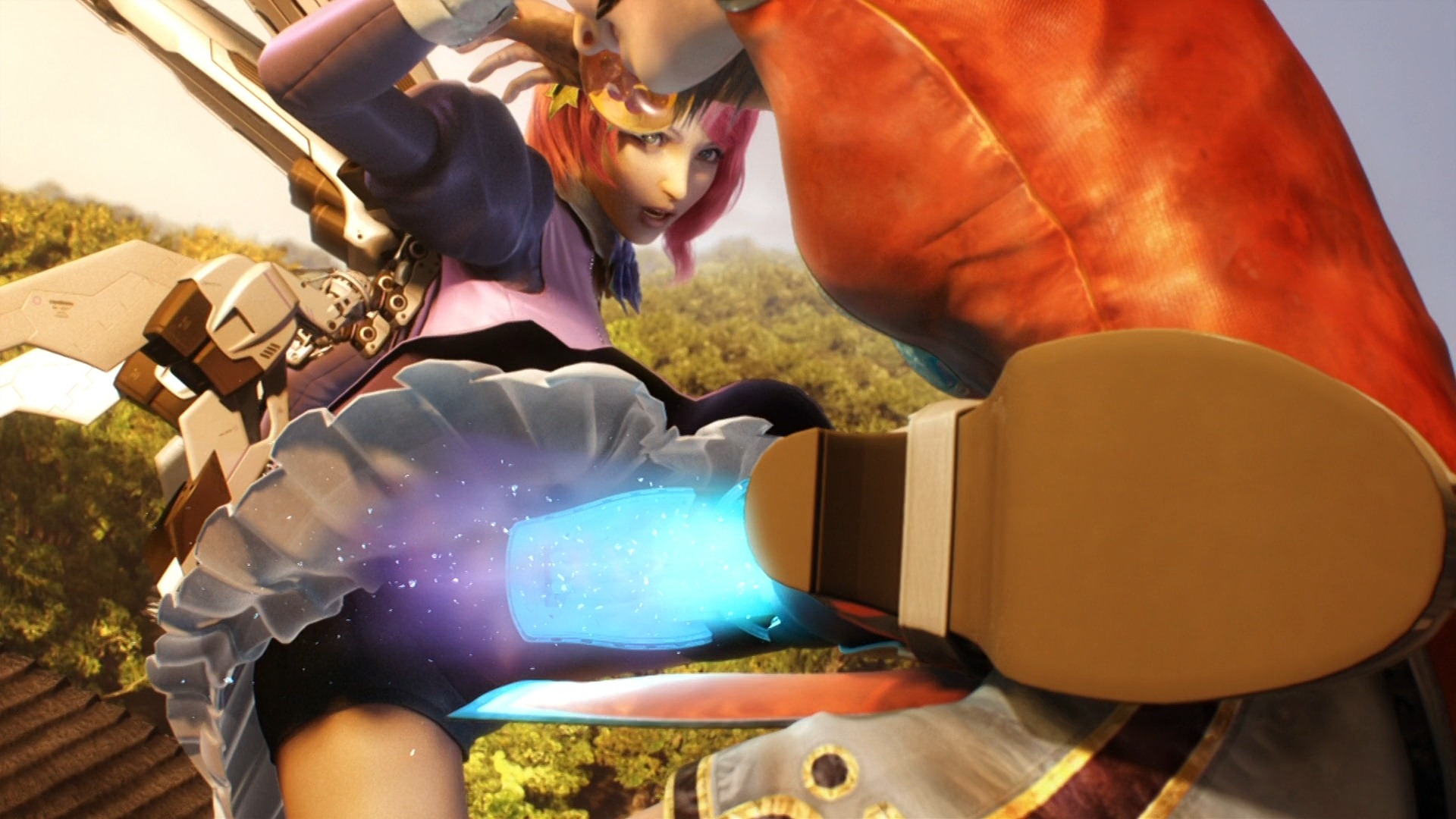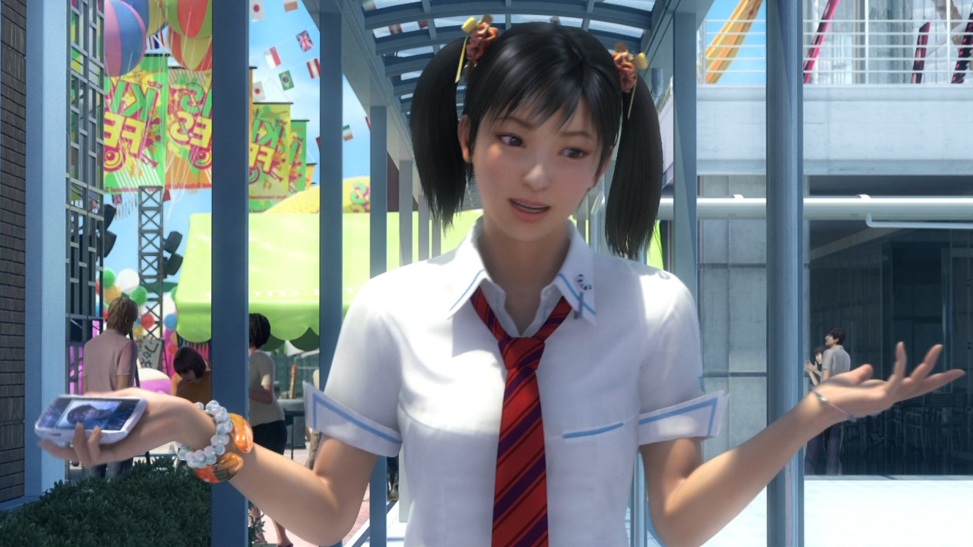 Then as Arisa’s Master went all Super Saiyan and the battles went into the ridiculous levels of games that tekken is, saw Xiaoyu spending the fight time running for her life all the while not letting go of Arisa’s top remains.