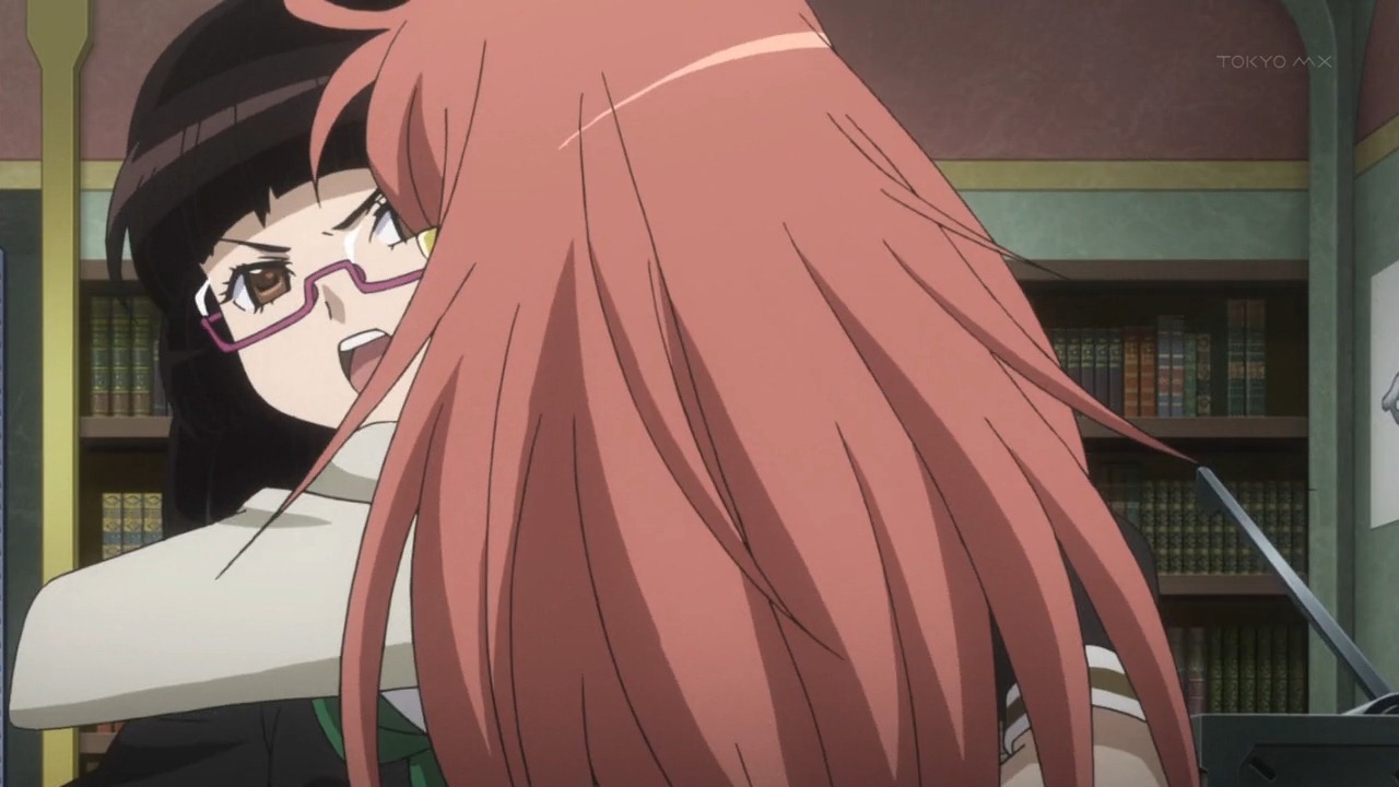 That blush didn’t fool me. She claims it’s because she wanted a parfait but we all know what she really wanted…otherwise why did she appear in person to deliver a message/warning that she could have easily done via email? I’ll tell you why. It’s in the “tsundere in love” code. Never miss an opportunity to scoff at the person you love’s antics. Chiaki wants Marika so badly she can’t resist an opportunity to shower her with tsun-tsun love.