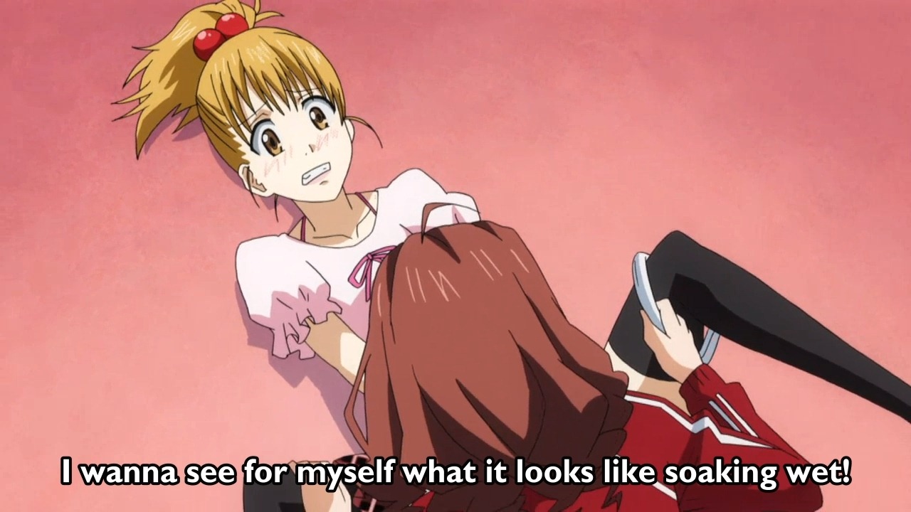 This anime is just super crazy! Each episode was like 6min long but they are the craziest minutes of anime! For example, just in episode 10, Minami (pink) and Aya (curls) have a contest of who is the wet Queen (in that who gets the wettest). Yes, I am talking about THAT wet…Under there! Of course Aya doesn’t quite get it (or she does, who knows) and every episode is that crazy!