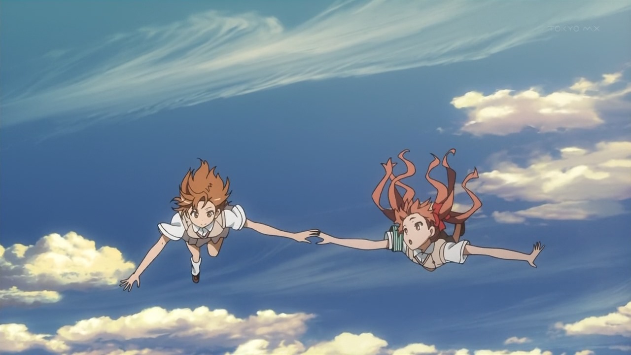 Look at them!! I don’t care what it actually is – Air-walk? Air-jump? Air-port? It’s still is as cool as flying! And the way Kuroko just so calmly handling the spontaneous actions of Mikoto there as if she has done this many times – As if they have done this many times before…