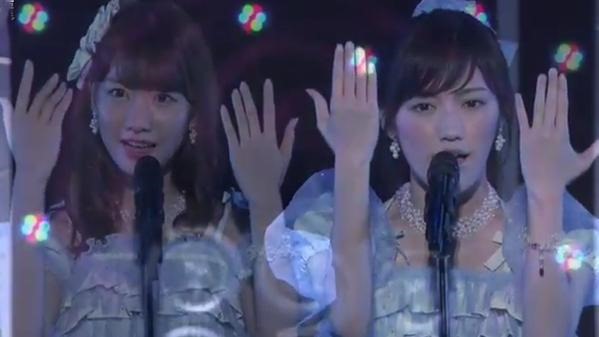And of course Mayu was back from illness for Yuki’s homecoming stage, and whist Mayu is never the most obvious or indeed open of people a lot of the time I swear she was enjoying seeing Yukirin perform in Kagoshima as much as Yukirin herself was, I mean she never said it of course (because Mayu) but you could kinda tell in the way she was (even more like MaYuki Mayu than “normal” MaYuki Mayu) Plus they did TemoDemo again and damn me they are good at it, plus I swear they had the same camera person they had when the did it at the request hour, the one who nailed it as much as they nailed the performance #rightinthefeels
