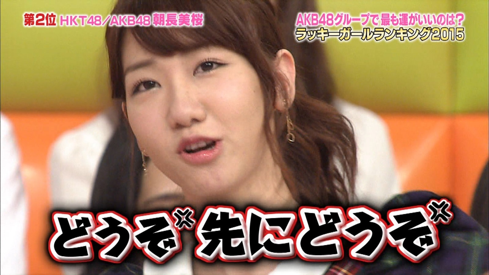 But with this I just felt everyone was bored/fed-up with the whole thing, not just Yuki the whole room was like, Oh Yuki again…. Oh…. ahhh.. yeah… whatever (Of course Yuki being Yuki goes along with it best she could) I even feel as though there was a crack in the idol persona armor of Yuki here where her annoyance almost boiled over, not so much because of the fortunes (seriously she’s gotta be past caring at this point) but because she has been chosen again, more than likely thanks to that darn “reaction queen” persona (a note on that, notice how Nishino Miki ranked low again as well, just saying)