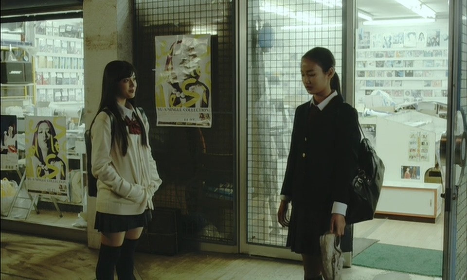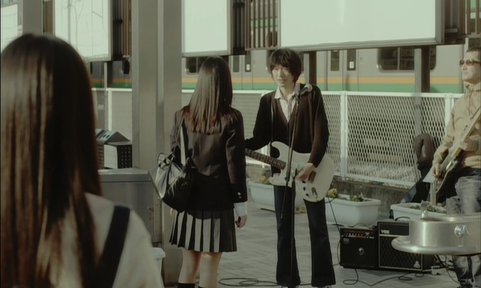 Most will be surprised though because even if I was expecting it, the way it happened didn’t make sense (Well of course I can speculate that it is jealousy but at this moment in the movie it makes no sense! Iinchou did say she didn’t even know the guy, she was just interested in the song, when Yuki asked her if she knew the performer). Looking at the scene you can’t deduce why Yuki was acting so strangely. What am I talking about? Well, remember that secret Iinchou wasn’t telling Yuki about? You know, the reason why she was at the record store? Well, apparently, the song she had being played had something to do with that secret and as she approached the guy singing it on the street, Yuki began to channel the crazy lesbian (Or is it crazy in love lesbian, I can never tell). She is suddenly angry. She decides to leave for no apparent reason. Iinchou decides to go after her wondering what is up (and so do I) but we never get one. She decides to leave Yuki to run away just like she always does by herself and goes back to the performers.
