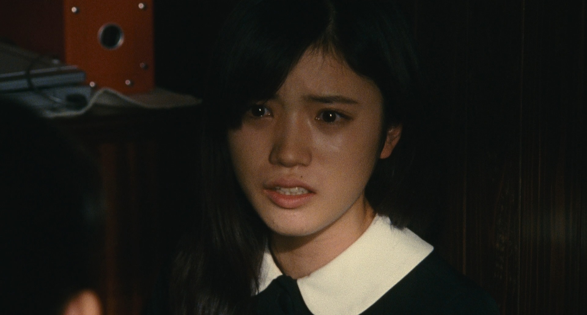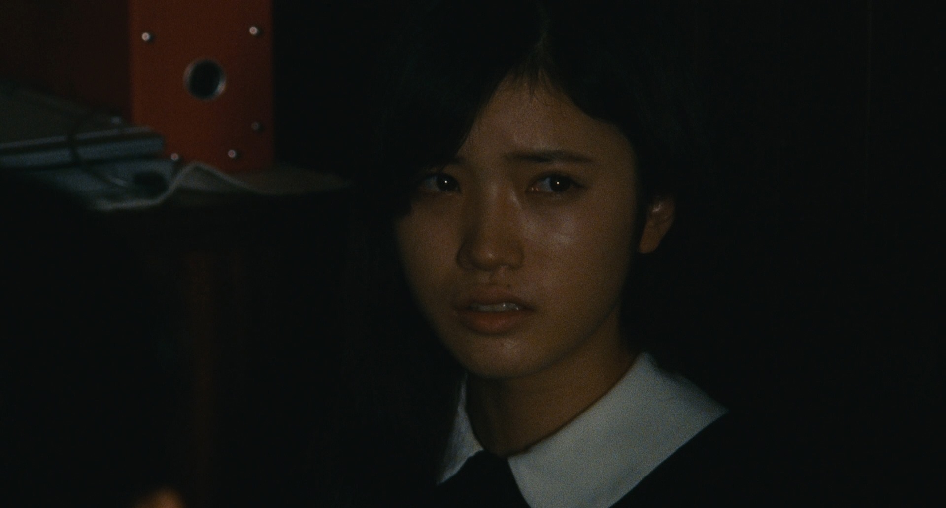 But Michi is so far gone that she doesn’t manage to stop herself this time. She is about to kiss the photo when someone snatches it away and Michi gets back to her senses. She turns around to find Aya standing there! She of course thinking that Aya is the cause of all the chaos, totally gets scared but Aya tells her that it wasn’t her. This is the first real meeting of these two in the movie! Friends are already dead, the movie feels like it’s already in the final act and these two are only just meeting!!! I was ready to blow a fuse abut then I looked at the time bar and it turns out that we are just barely around the half-way mark. It is 105min long movie so I just sat back and chillaxed!