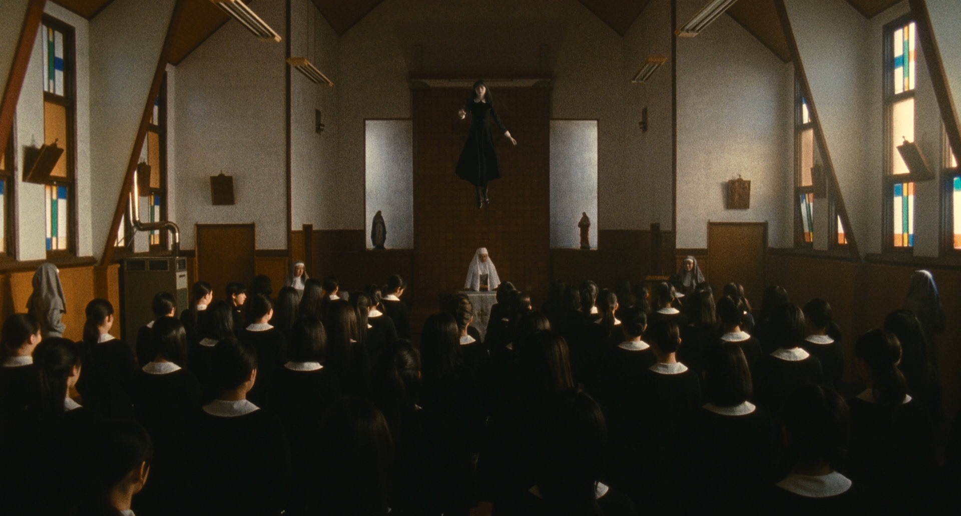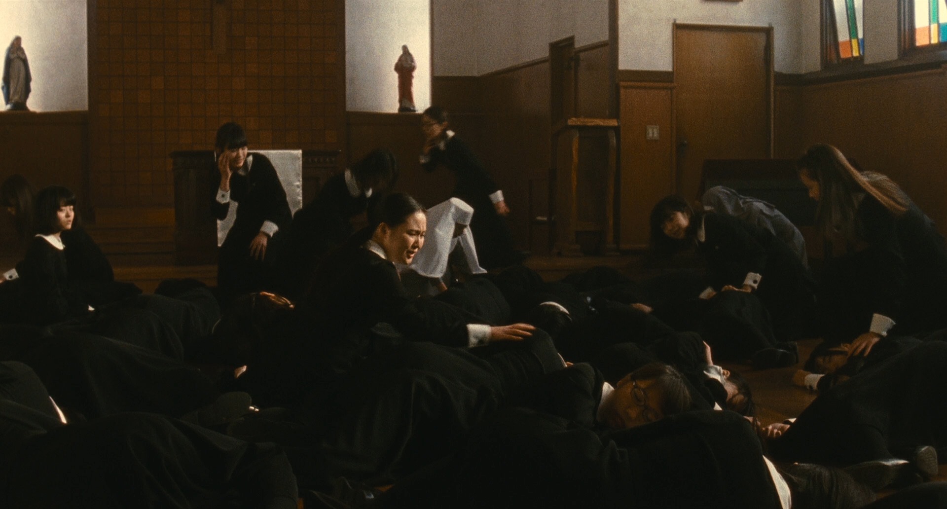 And so the movie opens around this time, only a few days left to go before graduation, Aya is still locked up in her room, the girls are going crazy without their Aya, the curse is spreading and getting stronger. And in the process bodies begin to fall like sheep.