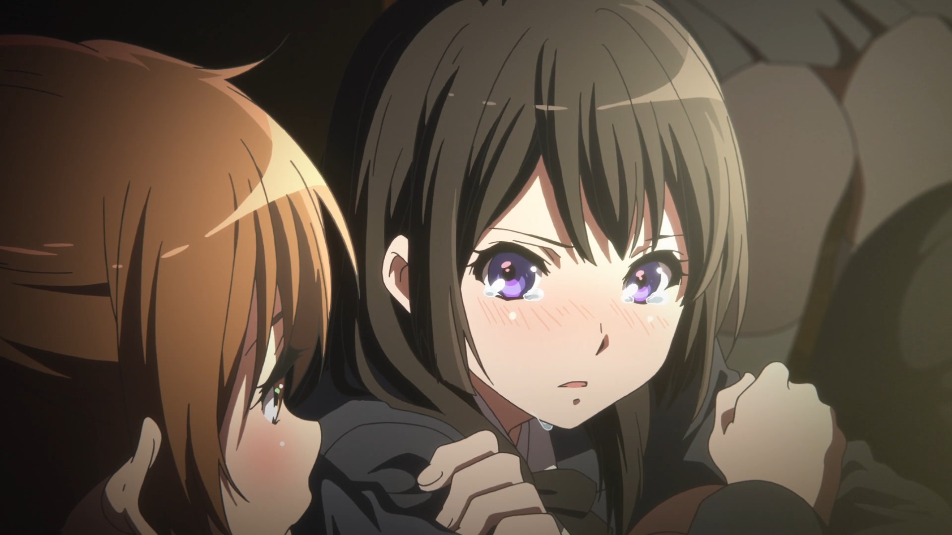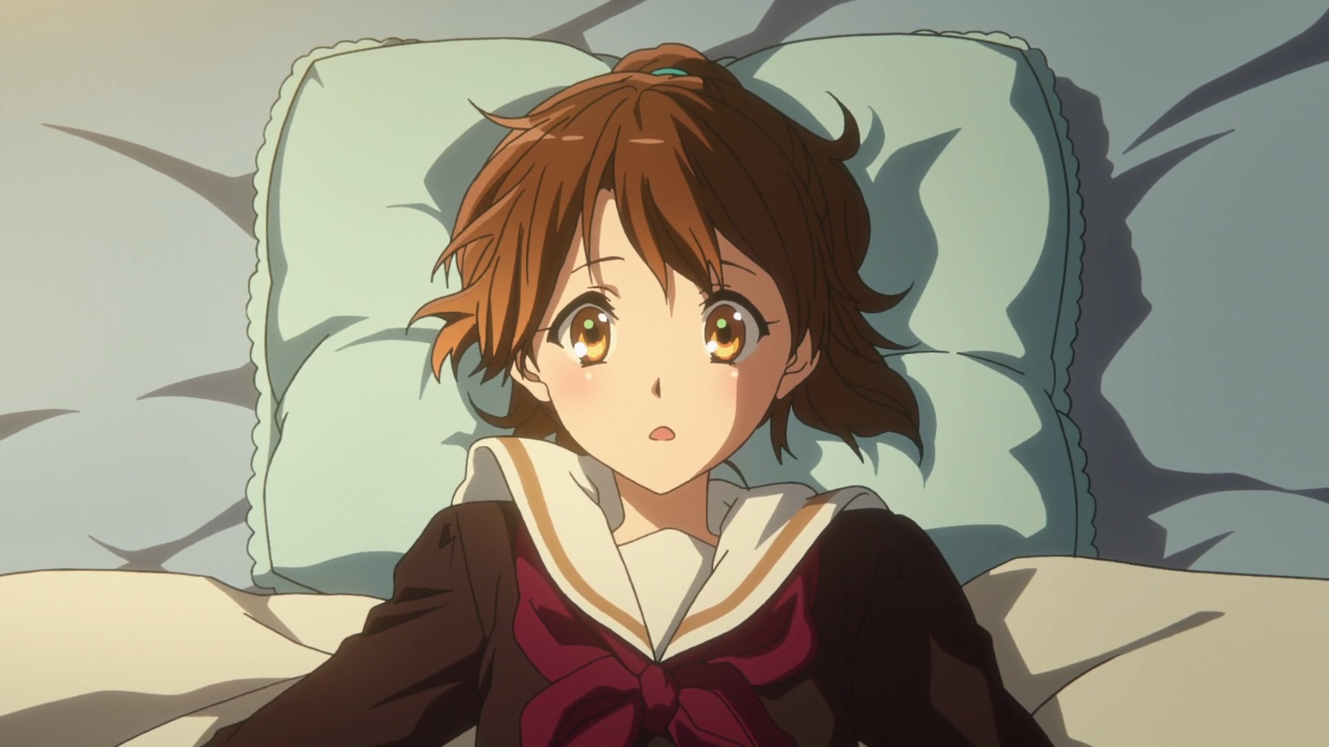 We first meet the two while still in Junior High during a competition where even though they were winners of gold, they were not chosen to go to the nationals! We are given glimpses of each character’s personality here and from that I could already see what we are in for in terms of their dynamics! While Kumiko was laid back and less interested in the results, Reina on the other hand was crying at not having been chosen to go to the nationals. Those delicious tears of Reina’s seemed to have left a great impression on Kumiko though as we see later.