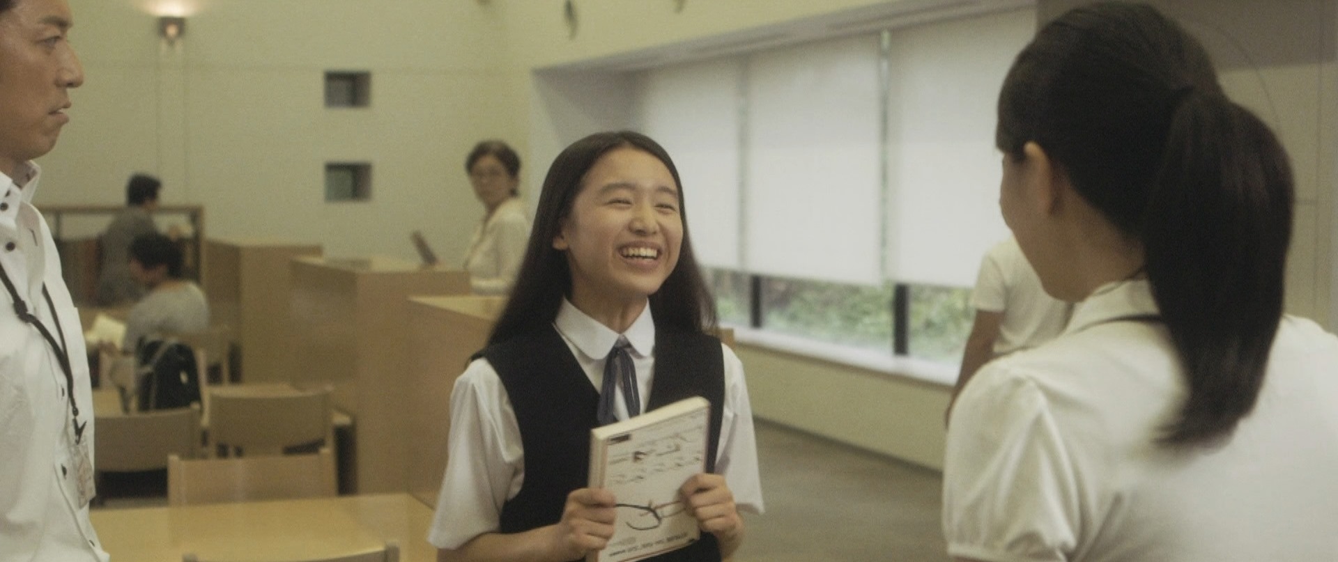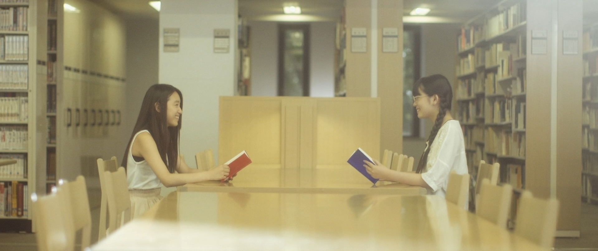 We started the movie at the library (disregarding the transition scene that combined the book characters and the real characters having fun on the roof top). Mika was there to borrow some books and Takane had come with her. In that very scene as Mika goes over to the counter to check out the book, Takane watches her up on the first floor and it was within that first look that I knew she was already smitten with Mika. That look was what you would imagine Madsen having as she looked at Sakura in the second Card Captor Sakura movie. It was one that was filled with so much emotions it was kind of painful to watch. As if she had felt the weighty gaze on her, Mika turned and looked up at Takane to give her a heart-melting smile. Watching the movie the first time you would think that they were already in a relationship.