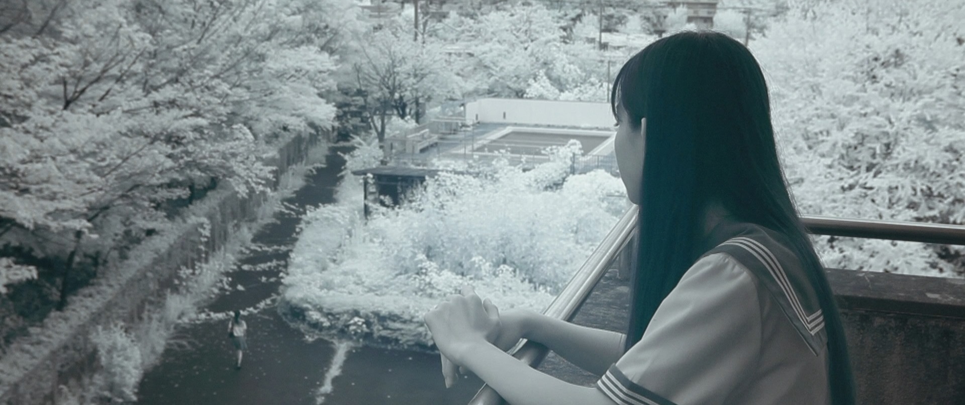 Cut back to the book, we are on page 136 and Chiyo is back in that spot where she and Mikako first met! She watches as down below, Mikako leaves the school. Half way Mikako stops and turns around to gaze up at the spot that Chiyo was in. Chiyo ducks to avoid Mikako.