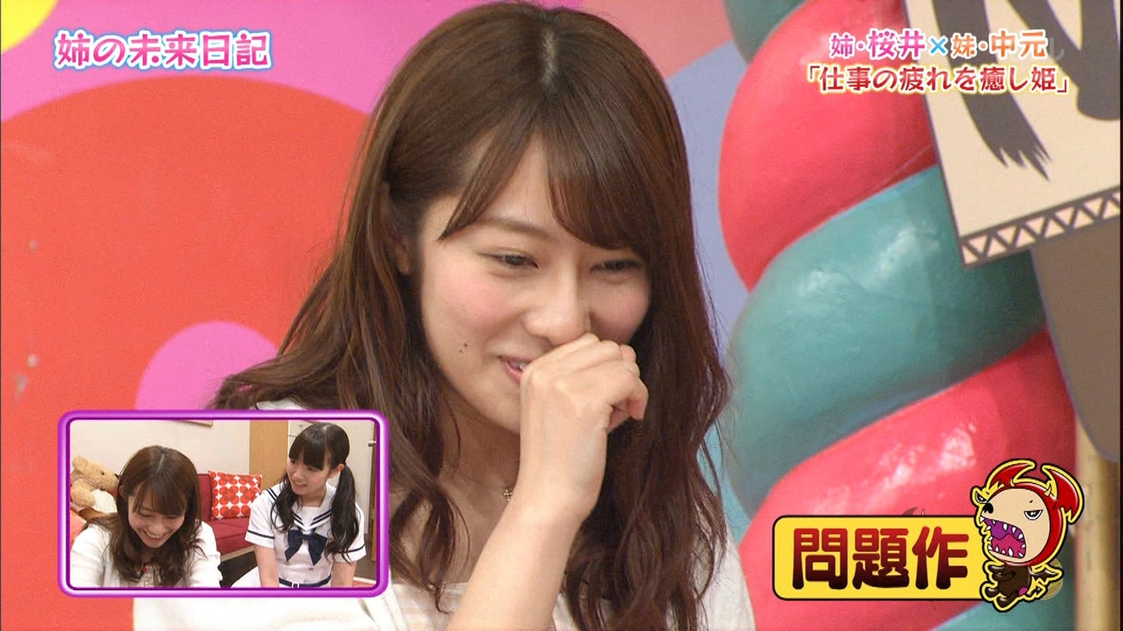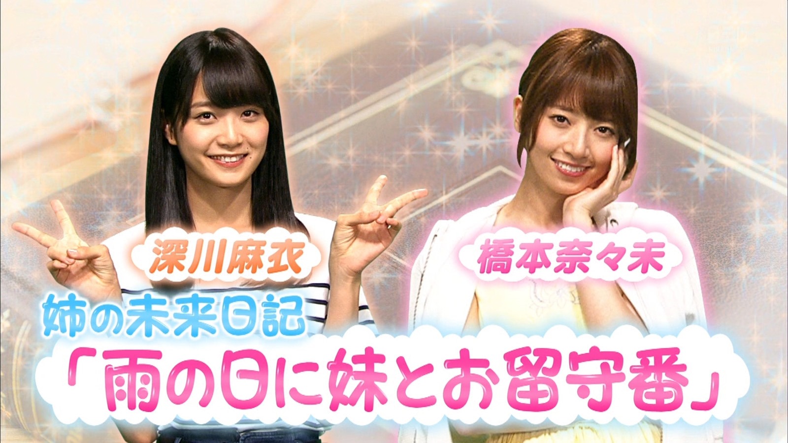 The first sisters up are the Hashigawa Sisters. That is of course Hashimoto Manami and Fukagawa Mai. It was interesting that Hashimoto chose MaiMai as her Imouto since she is the one and only Oneesama of Nogizaka. But we also all know that MaiMai is a Hax of nature! That young woman can act cuter than even Minami or Asuka and at the same time be the coolest beauty you will ever see! So seeing her totally slay the role of a little sister was a given and not at all that surprising.