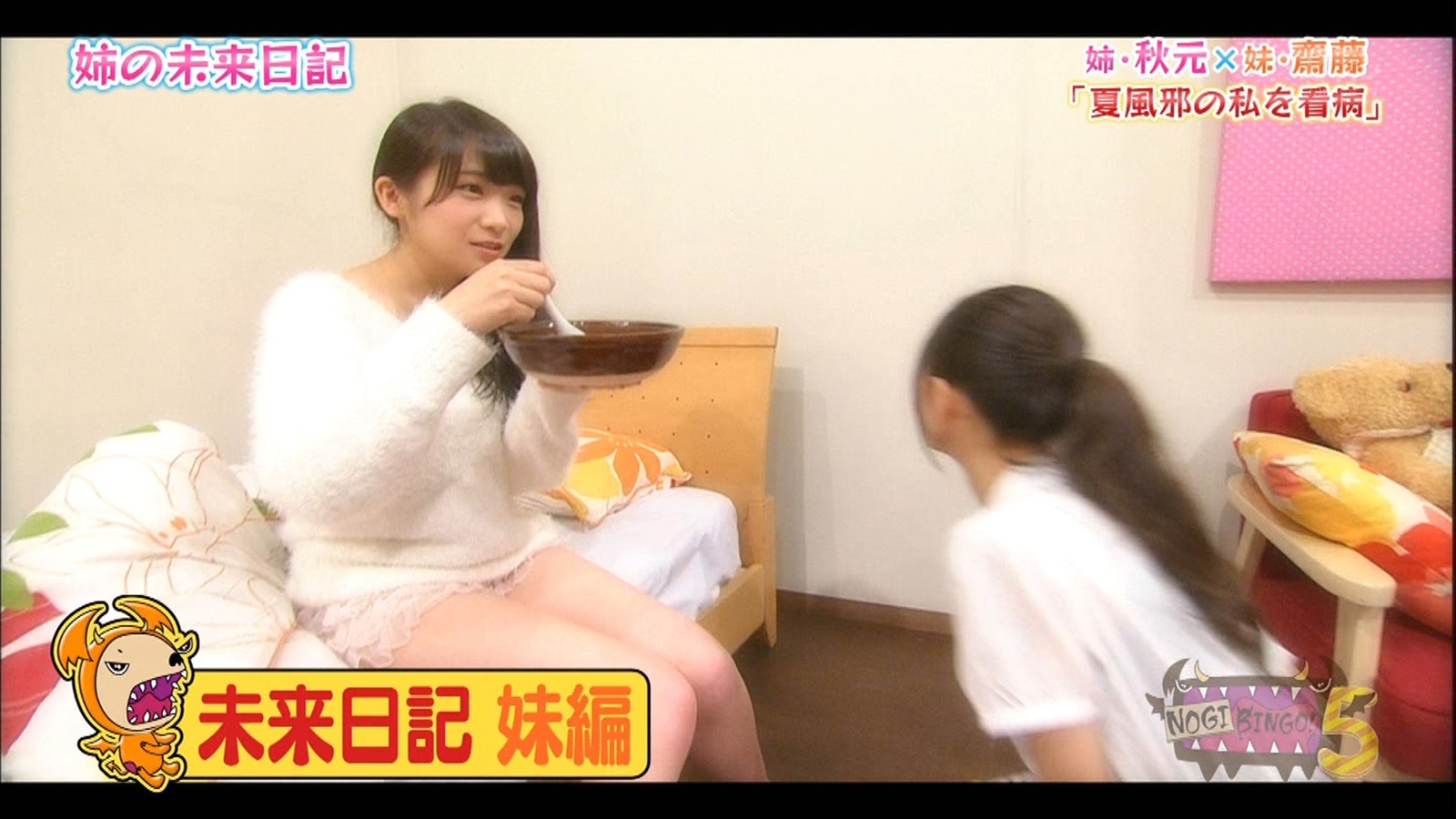 Meanwhile NOGIBINGO knows what the fans want and they are still delivering in aces even as the segments are new and no longer copies of the old AKBINGO ones. That was like so season one, they are on the 5th now and things are getting better still. I mean come on, a segment where the girls get to act out their mousou lives as Oneesama with the members of their choice as their Imouto?! What is more awesome than that? Seriously, it almost even beats Danso for me because if you think about it, even though under the Danso they are still girls, the concept is that they are guys during those Danso segments so it is actually not yuri. Meanwhile here we get to not only have actual girl and girl, but this is essentially wincest!