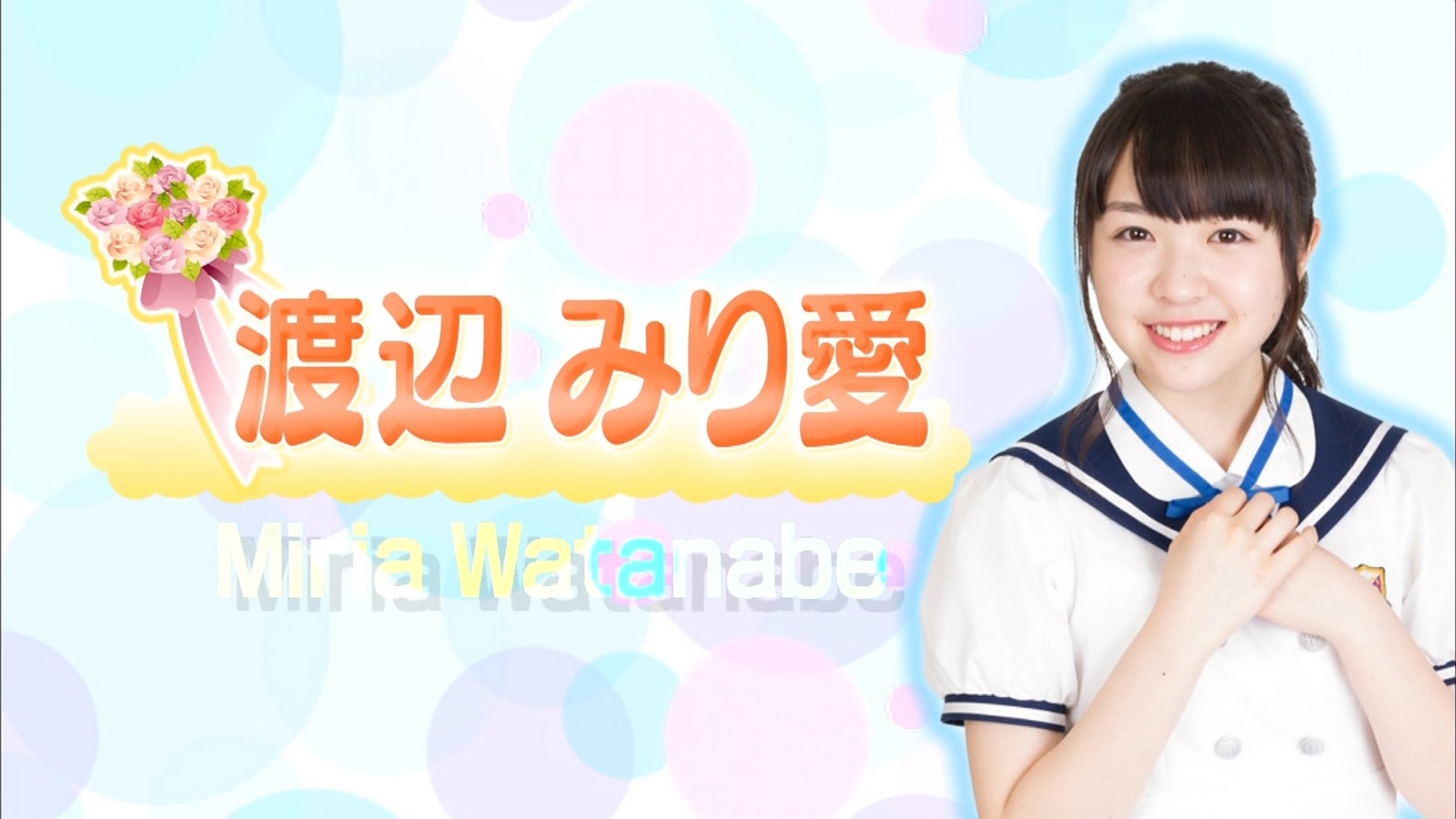 Next up was Watanabe Miria. She is growing on me this girl lately. I swear it has nothing to do with her exotic name, nothing at all, neither her cuteness! Anyway I am kind of lost at what her line means. Is it right to think that she was hinting to her Oniichan that a new love is awaiting him and for him to do his best? Anyway I don’t understand it but she was cute so…pass! Go get a hug from Hashi-nii!