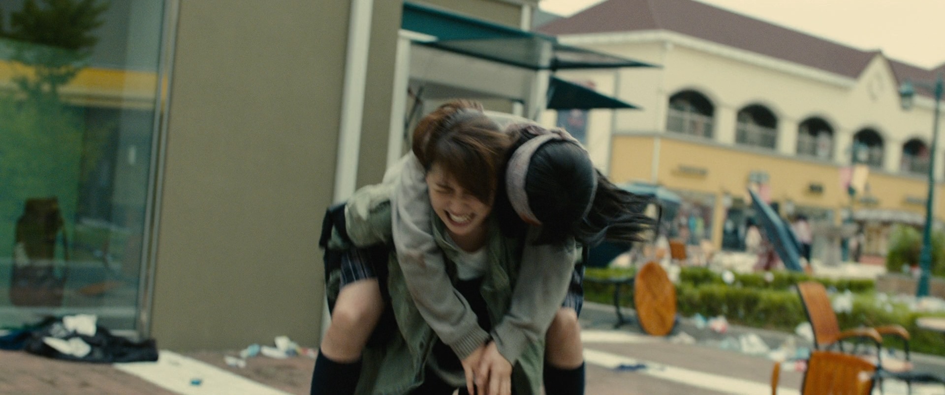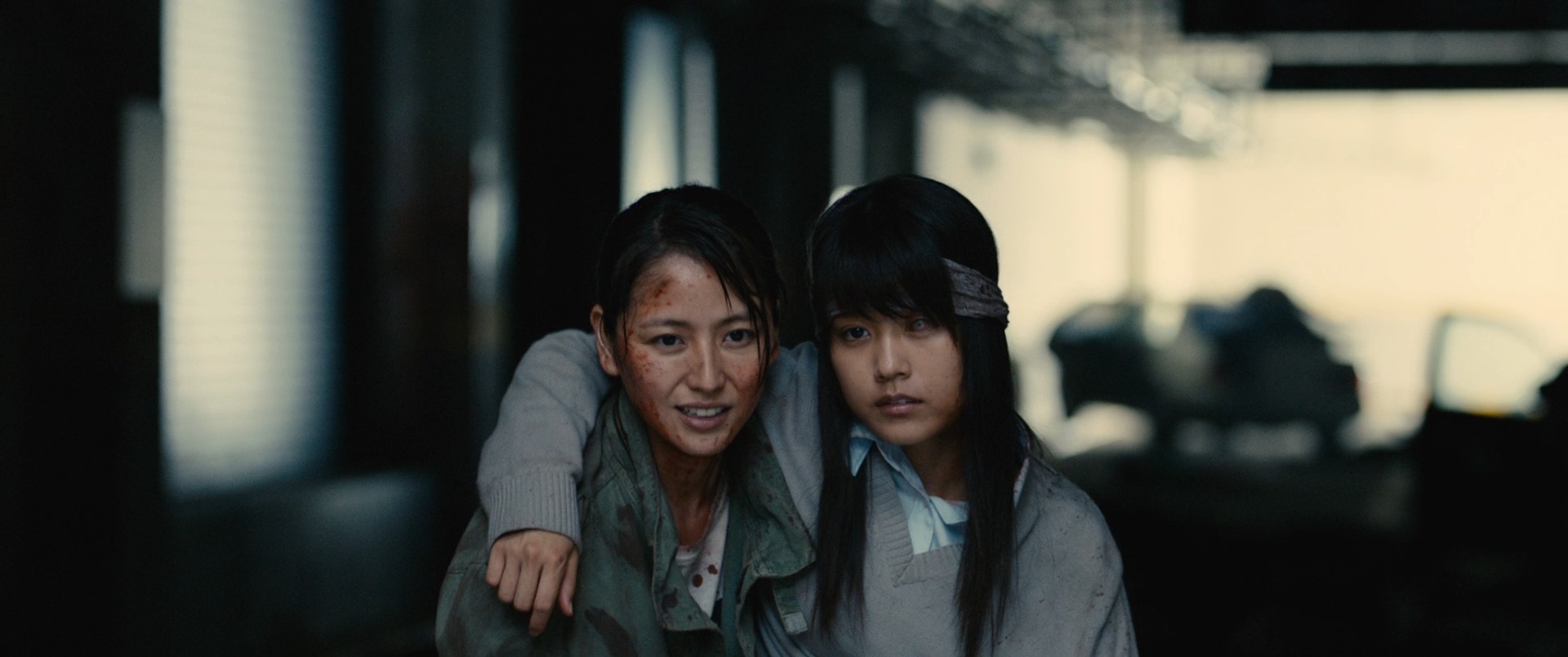 Nagasawa Masami plays Yabu, a woman who used to be a nurse that feels regret at her earlier actions when the breakout first happened. She ran away saving only her self and no one else. Arimura Kasumi on the other hand plays Hiromi, a high school girl that runs into our protag and redeems him and Yabu along the way, while she on the other hand was turning less and less human. We don’t run into Yabu until a bit later into the movie when Hiromi is already turned!
