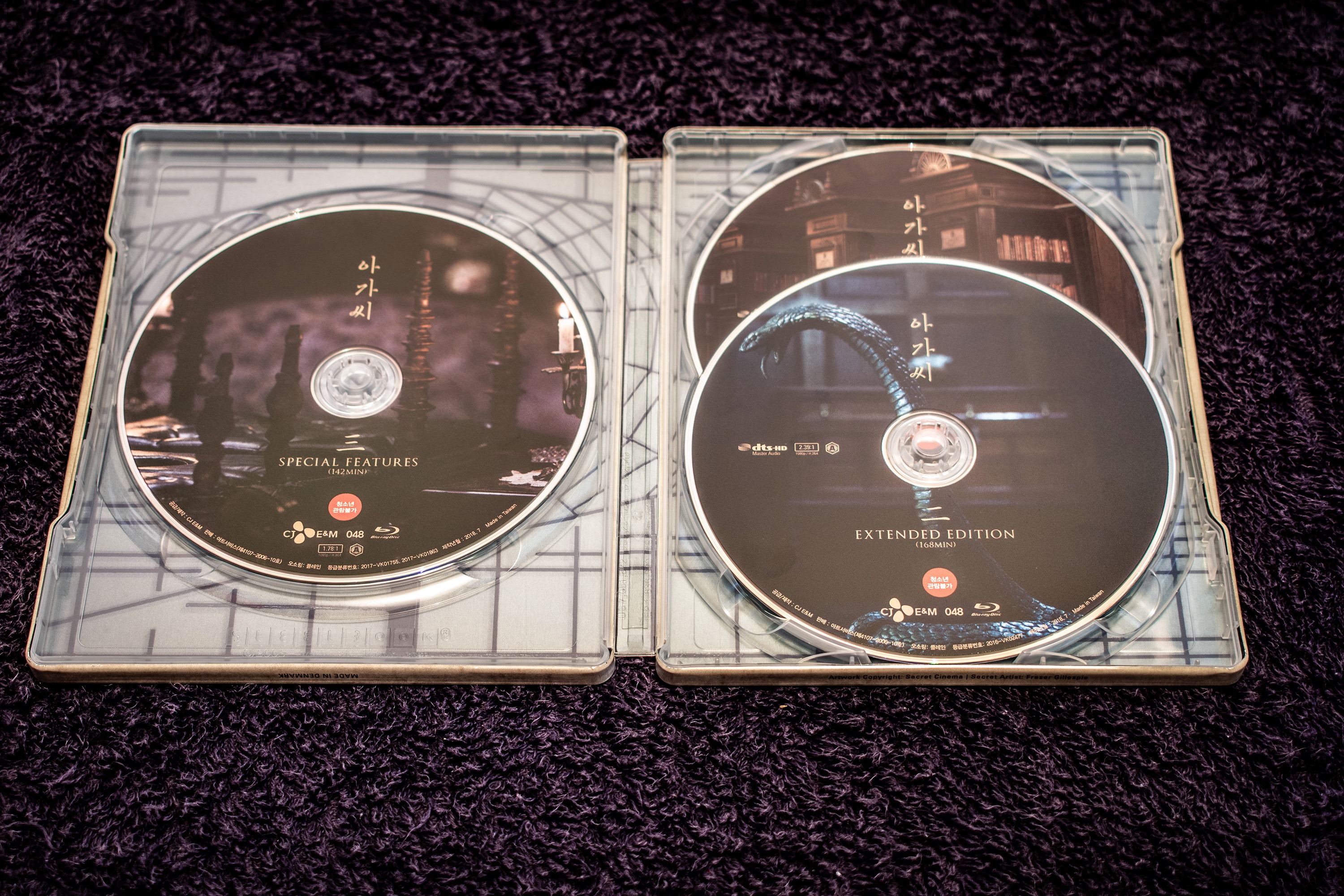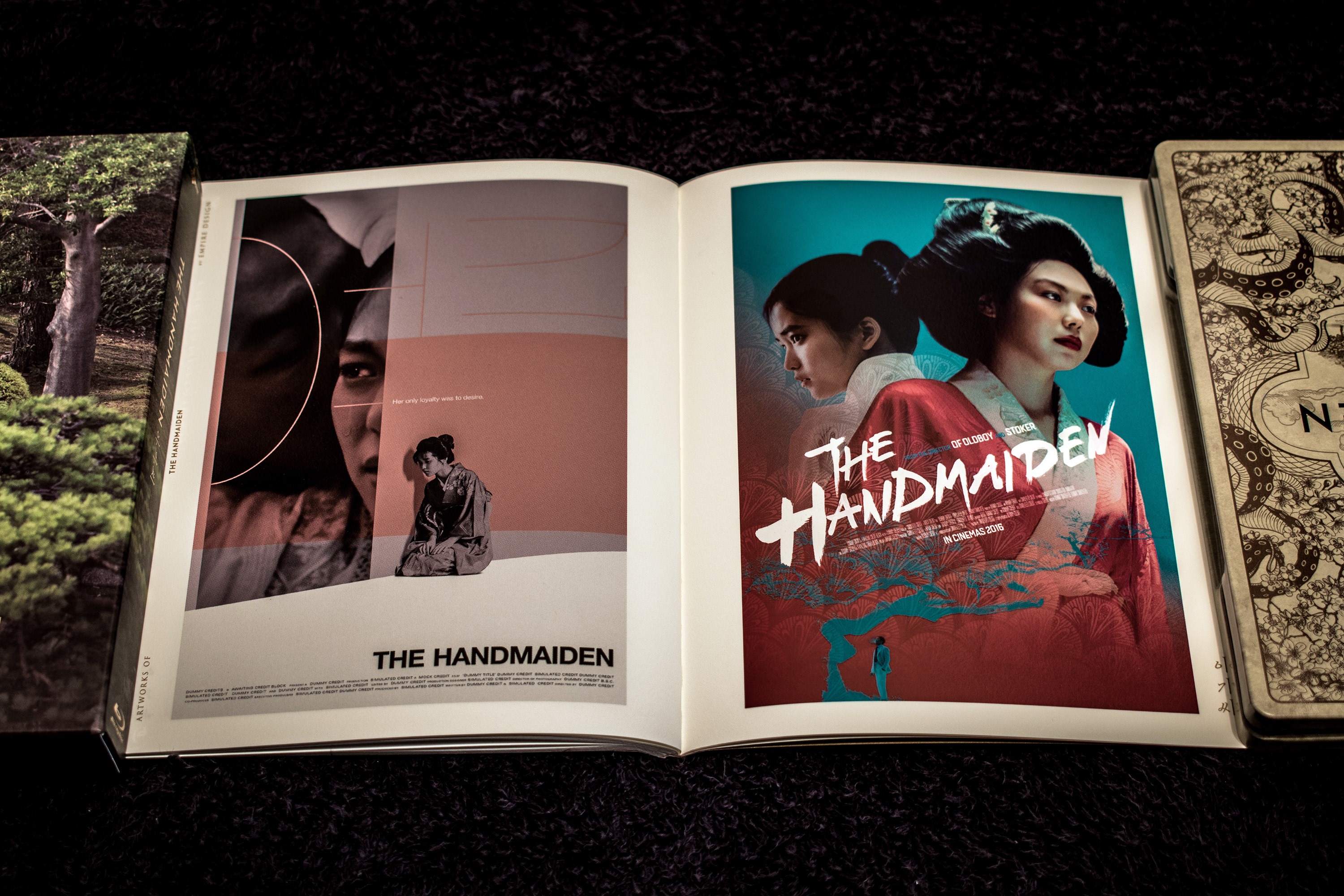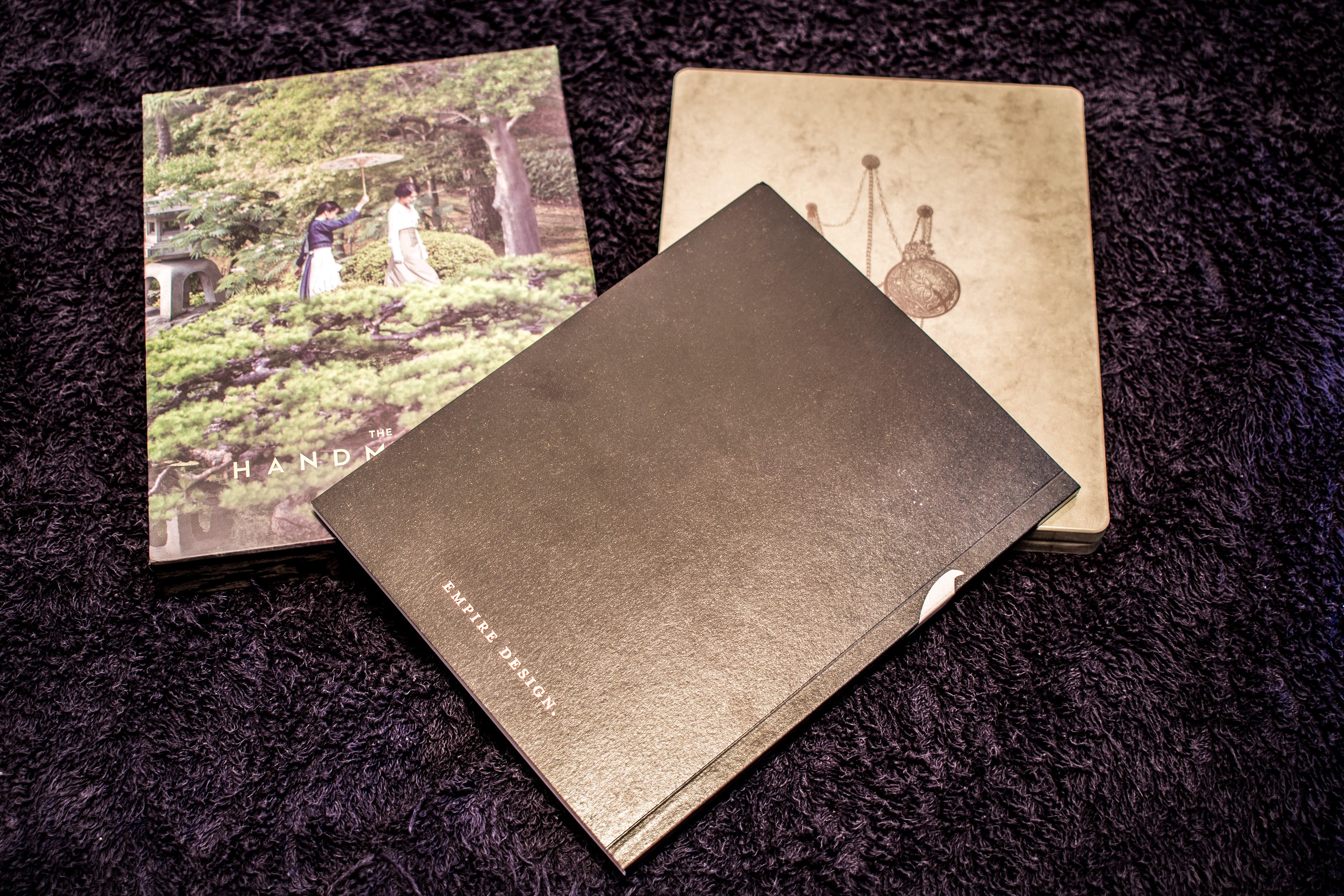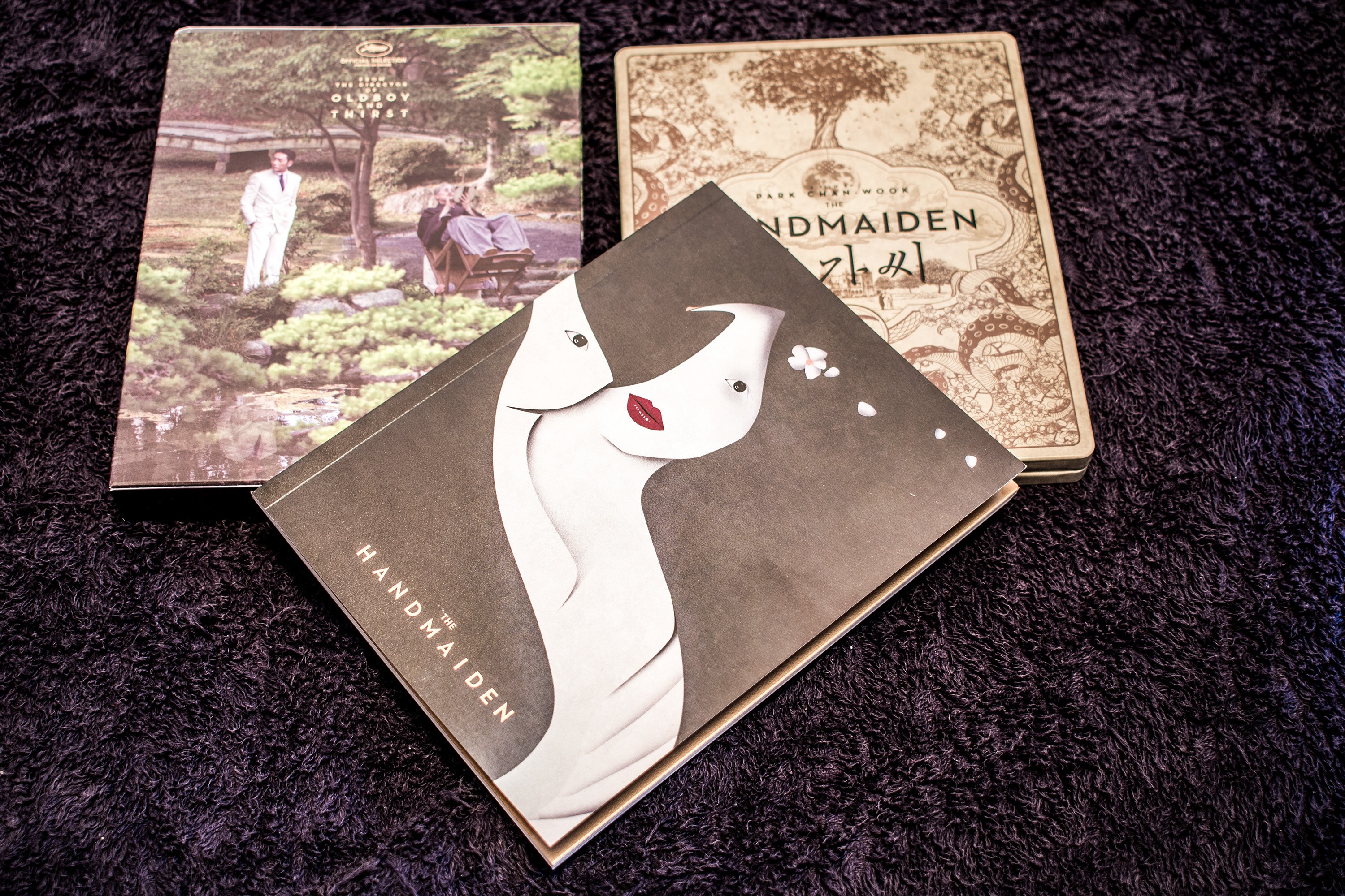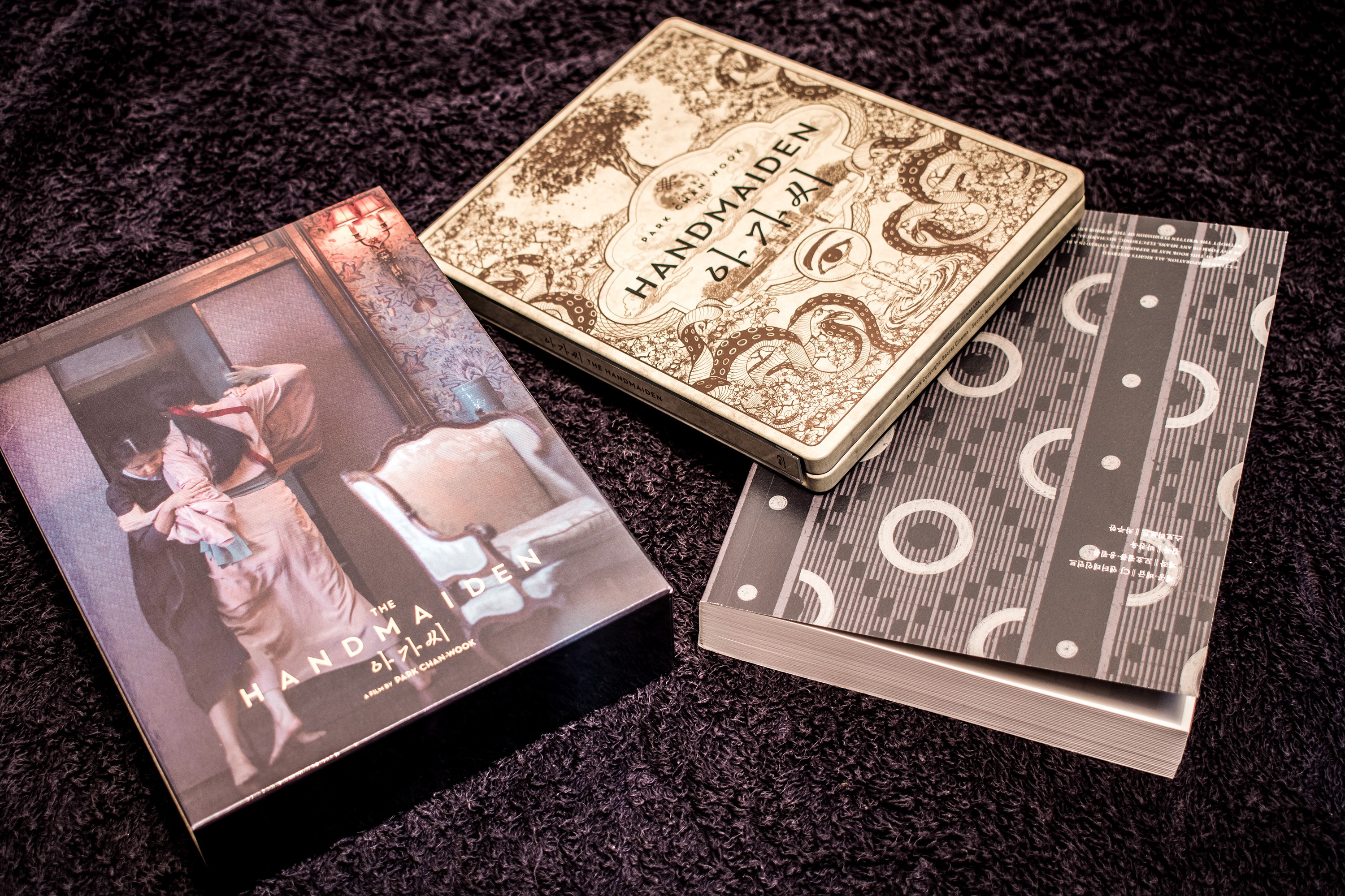 Anyway, I bought the mega pack which contained all three variations of the release! The first one is this one that contains the holy bible of the movie, aka, the complete storyboard! The discs are encased in a really awesome looking steel-book! The outer cover of which has Hideko chasing Sook-hee out of her room (after slapping her).