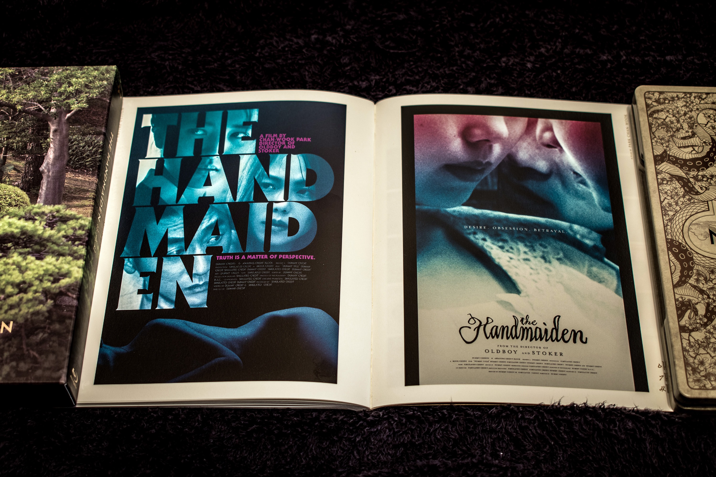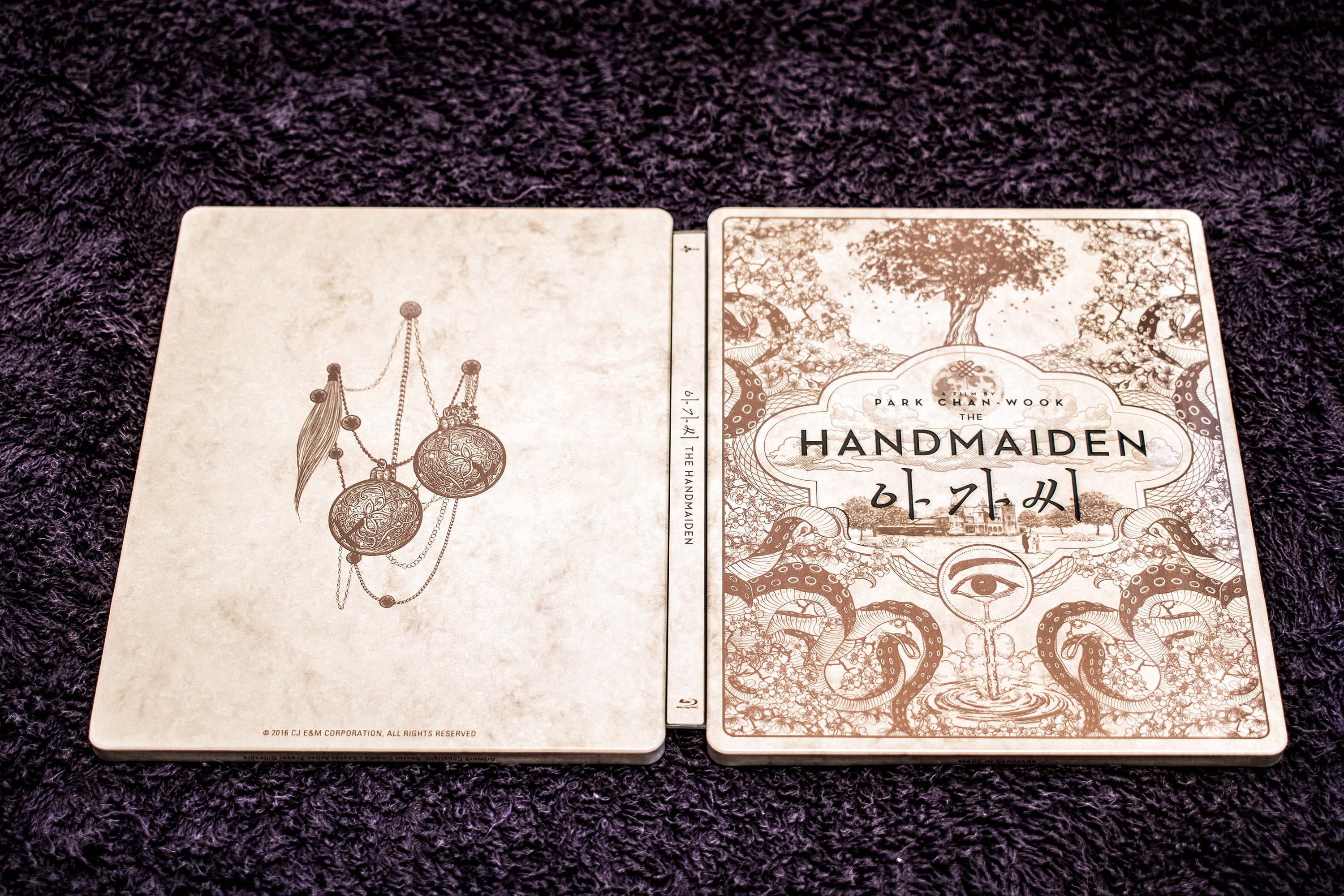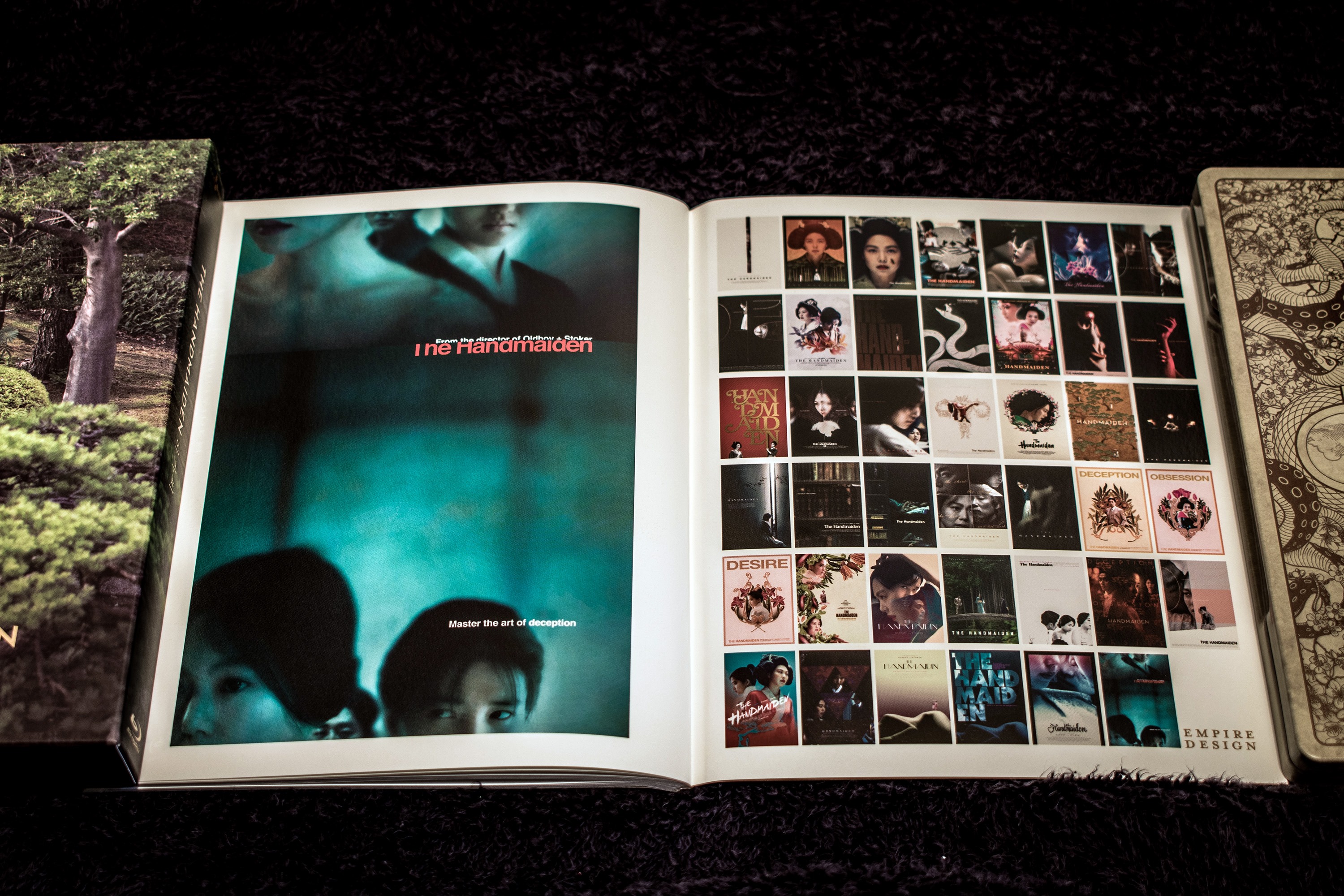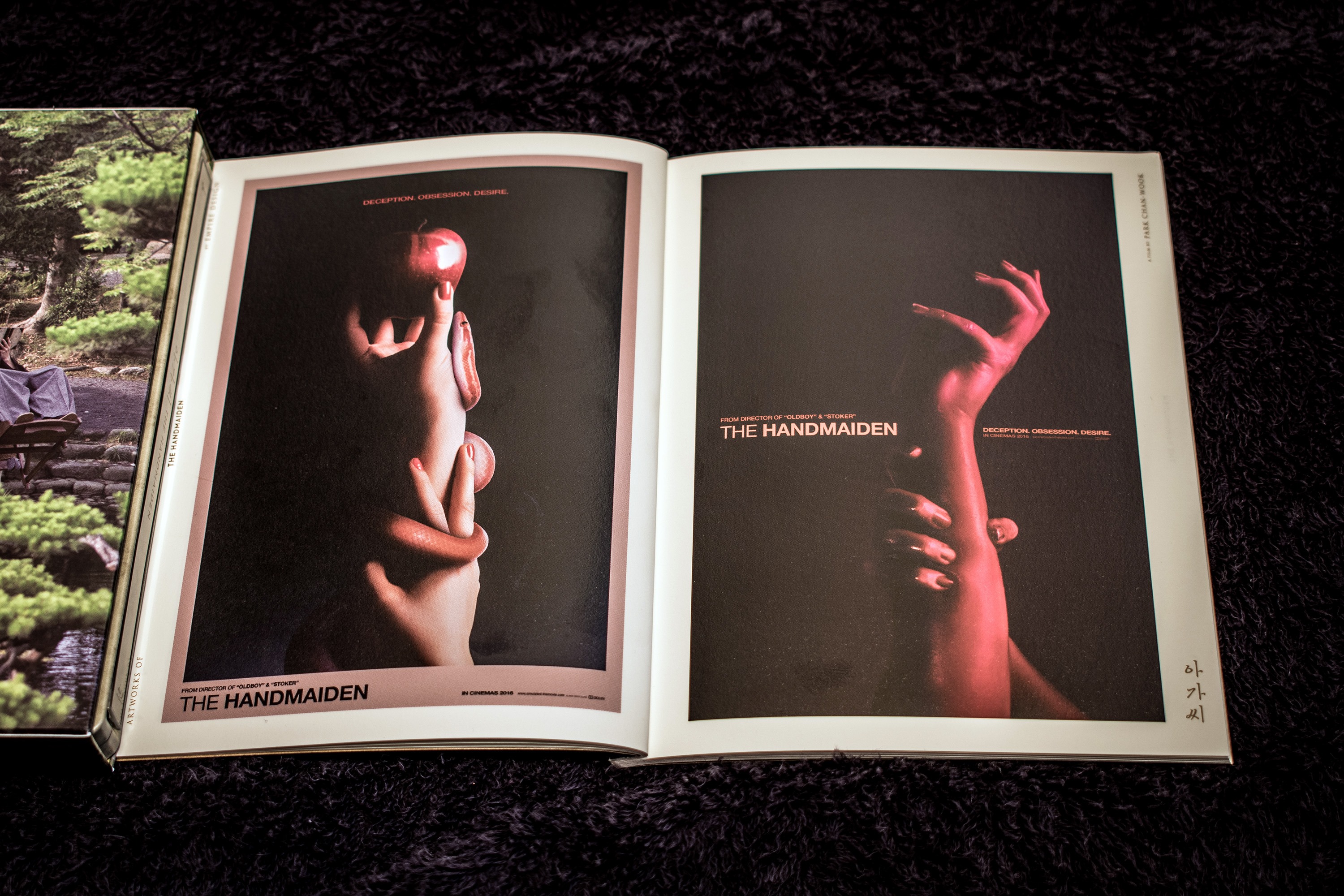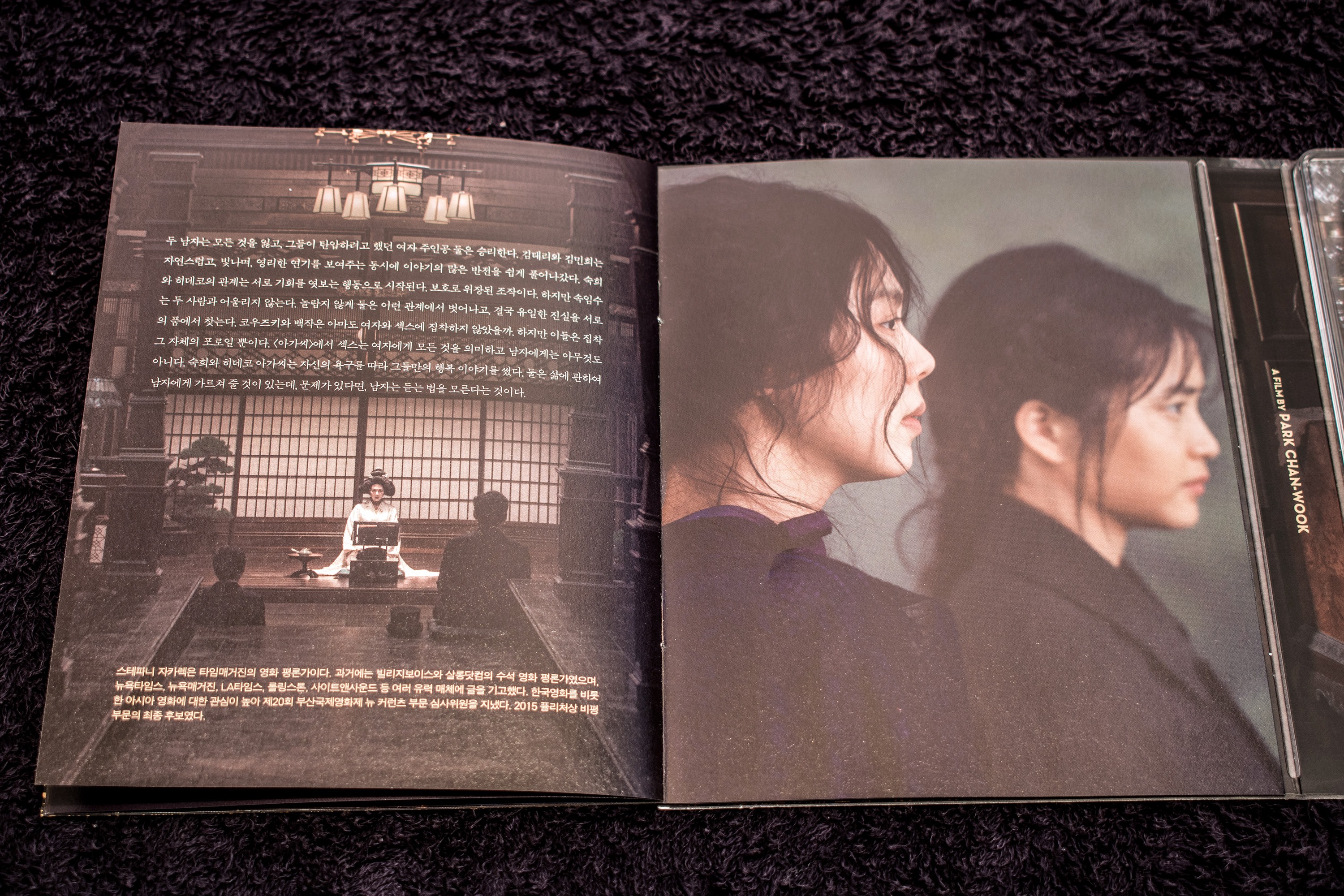 Anyway, I bought the mega pack which contained all three variations of the release! The first one is this one that contains the holy bible of the movie, aka, the complete storyboard! The discs are encased in a really awesome looking steel-book! The outer cover of which has Hideko chasing Sook-hee out of her room (after slapping her).