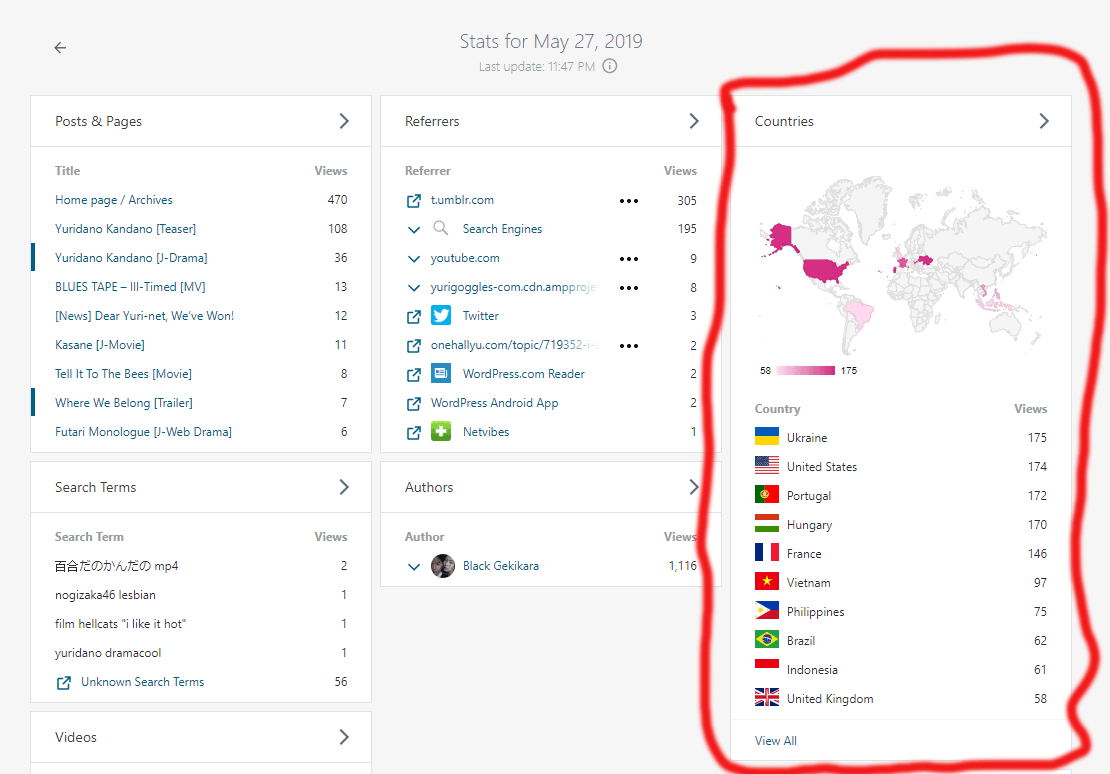 First of all your logic implies that I am some grand site that Japanese fans visit. I mean foreign fans shouldn’t impact your profits, right? Even when we do it’s the good kind of impact, when we buy merchandise. And how do we do it? How do we find out about it? By someone who speaks our language telling us about it, like, you know, this blog!!! Secondary, I usually get under 500 visits a day, most of them are the usual readers that have been with me since the beginning and wanna know the kicker? Japan doesn’t even come up in the list of top regions…