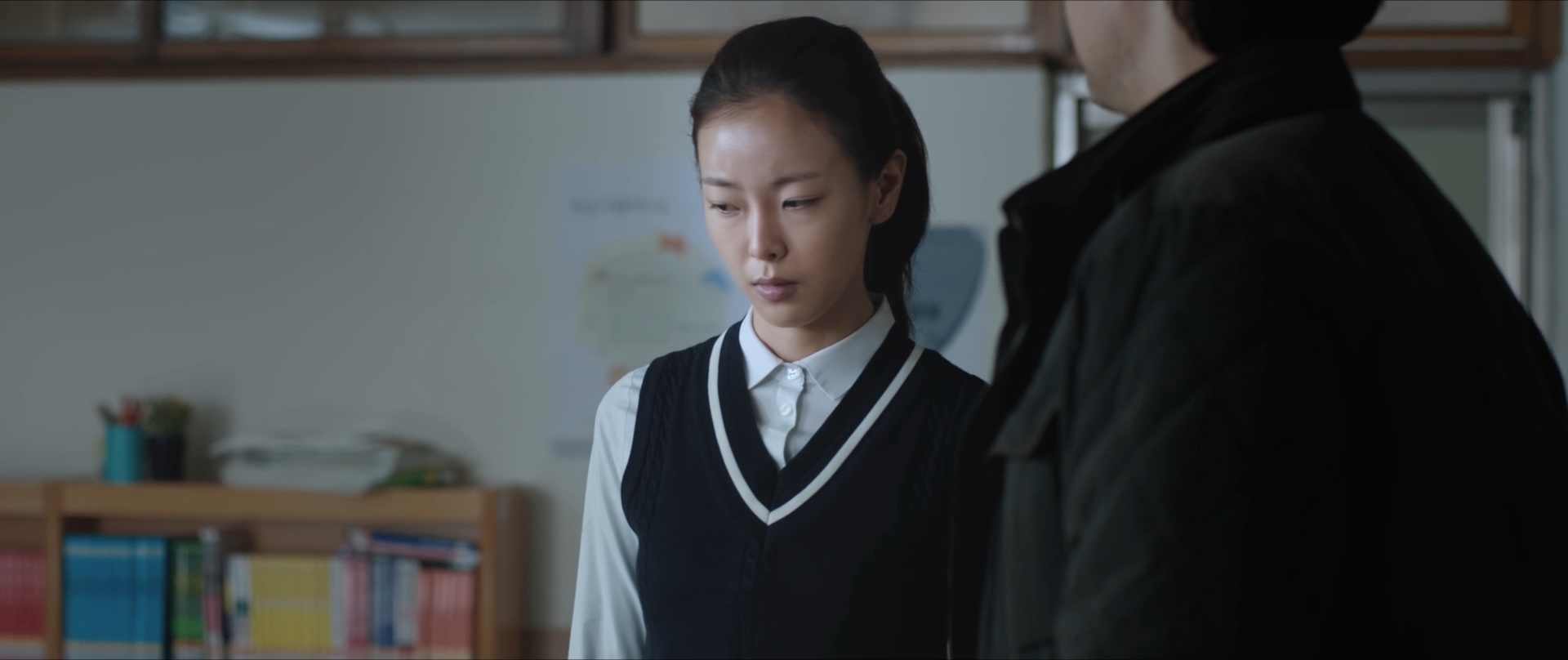 First off, while movies like this usually focus on the people doing the detective work, usually the lead is the investigator, this movie focuses on who, in any other movie, might be considered the culprit of said person’s death! This person is Kyeong-min’s classmate and once upon a time close friend, Lee Yeong-hee.