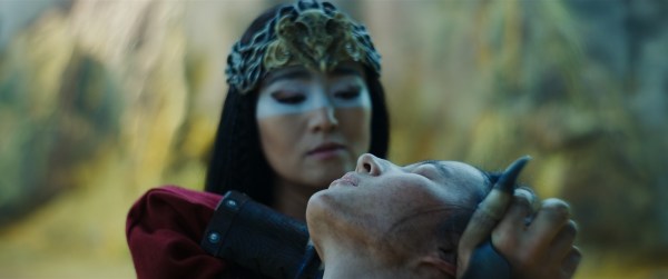Anyway, Mulan’s reaction at seeing Xianniang on the throne was frikkin priceless! Leaving all the inuedos of her pledging her loyalty to Xianniang and kneeling to her, it was once again a heartfelt moment between the two where Mulan does concede that they are alike as she asks for Xianniang to help her save the Emperor. The Witch does show her they way a la the Phoenix and again showing how so stupid the writers were to miss the chance of making her be the it, or turn into it after her supposed fate!